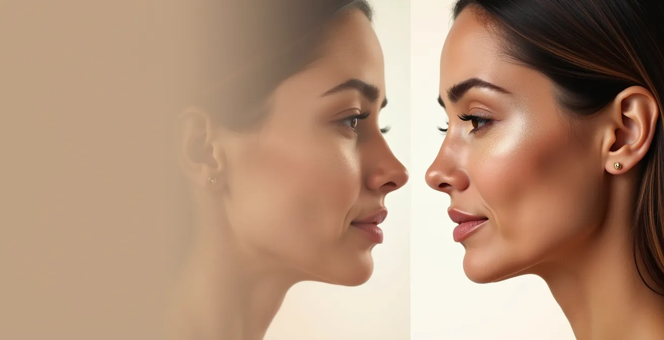 Pero, ¿y si te dijera que el debate «crema vs. polvo» es una distracción? La verdadera clave no reside en la textura del producto, sino en una técnica mucho más sutil y poderosa: la arquitectura de la luz. Se trata de entender tu rostro no como un lienzo plano, sino como una estructura tridimensional que puedes esculpir ópticamente. No se trata de añadir brillo, sino de redirigir la atención, creando un efecto lifting sin bisturí. Es un cambio de mentalidad: de aplicar un producto a dirigir la luz con intención.